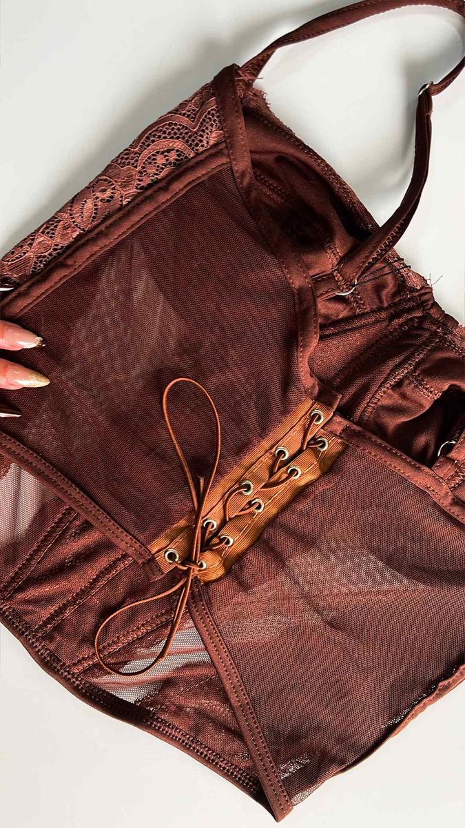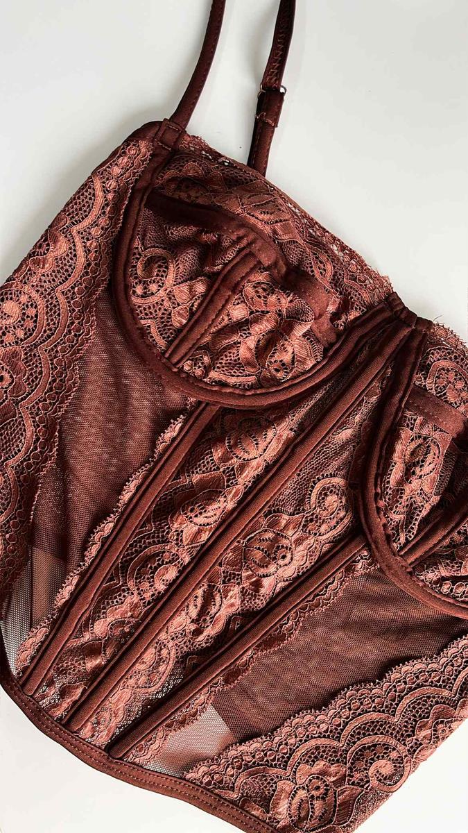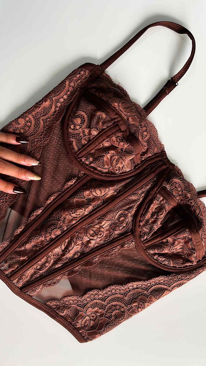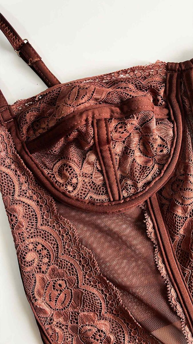Corset em renda com transparência, barbatanas que modelam a silhueta, não possui bojo mas tem uma excelente sustentação. Possui alças reguláveis e amarração traseira ajustável, garantindo conforto e caimento perfeito. Uma peça sofisticada e versátil, ideal para compor looks modernos e sensuais.