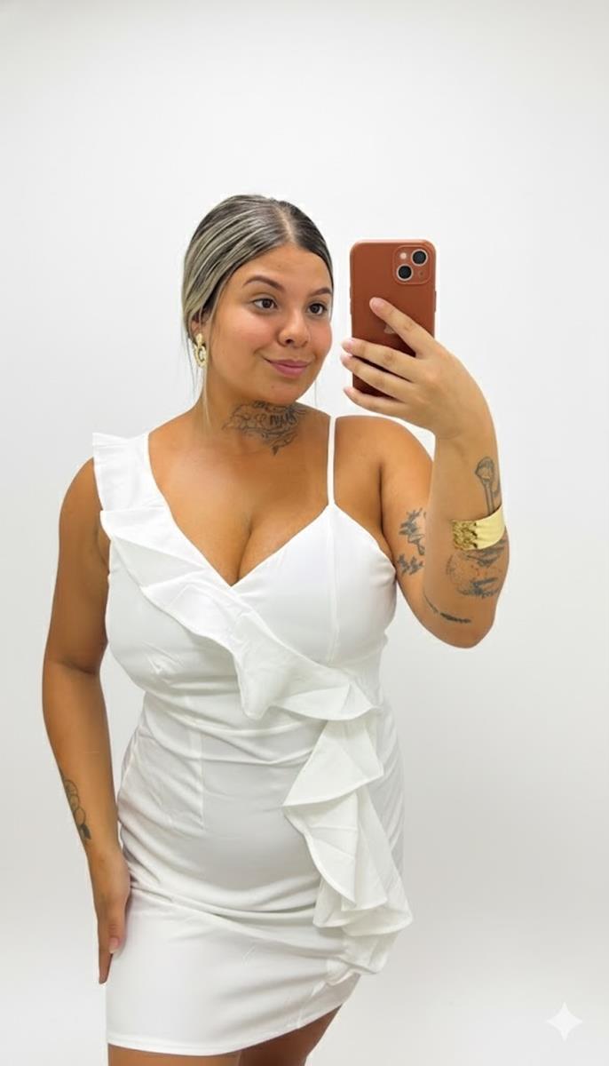 Equilíbrio perfeito entre o clássico e o moderno. Este vestido curto possui um design clean, enriquecido pelo detalhe drapeado e babado vertical que valoriza a silhueta feminina. Confeccionado em tecido alfaiataria para garantir conforto e elegância, ele é a escolha certa para quem busca um look "uau" sem esforço.