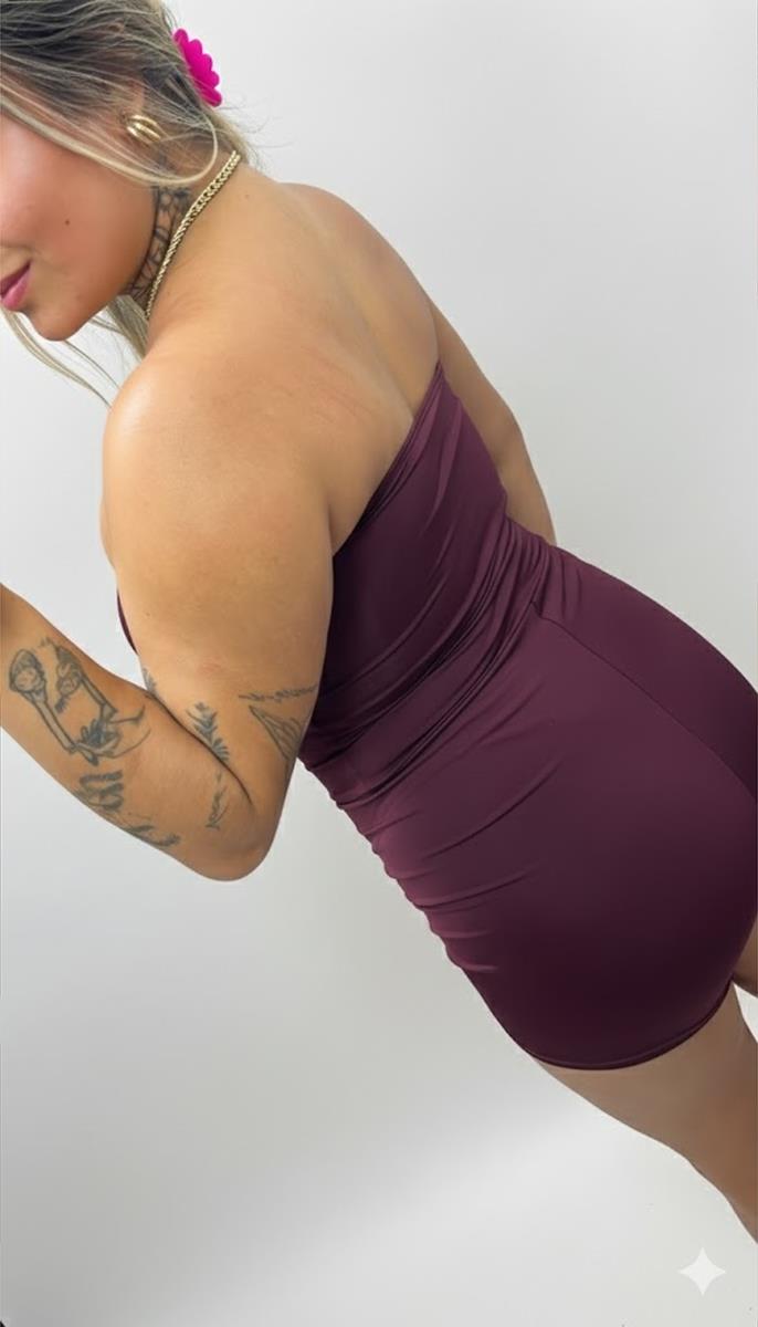 O macaquinho que une praticidade e tendência. Com decote tomara que caia e modelagem que abraça as curvas, esta peça é perfeita para compor looks casuais com um toque de sensualidade.