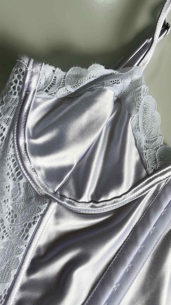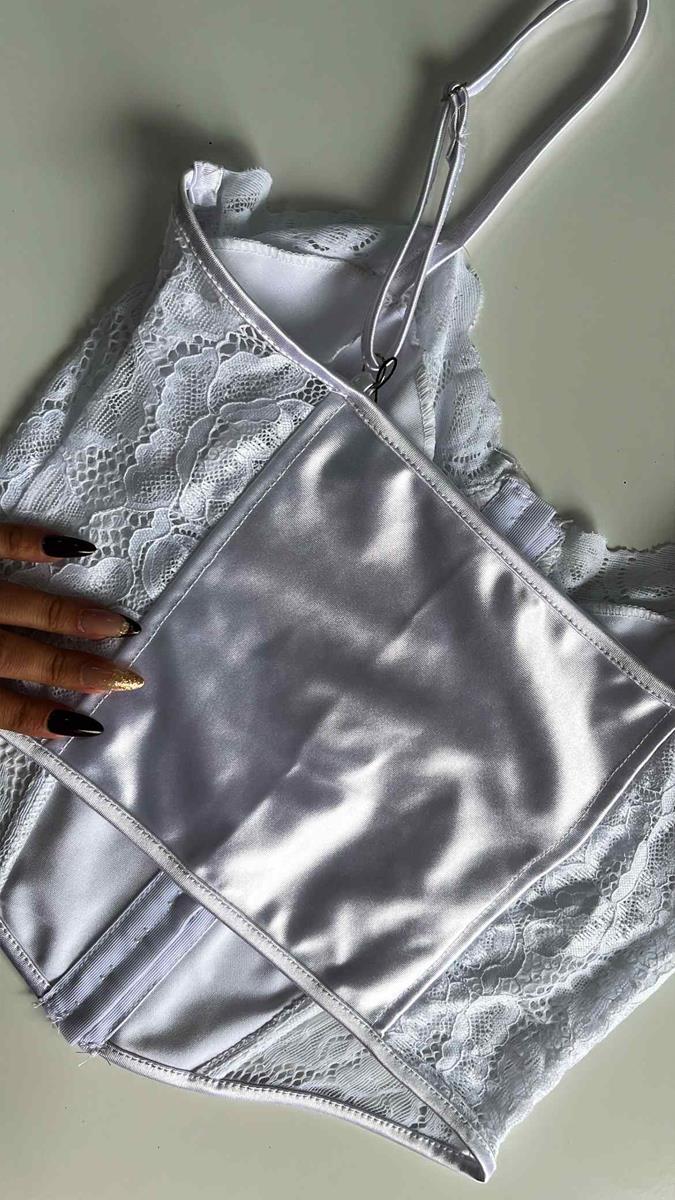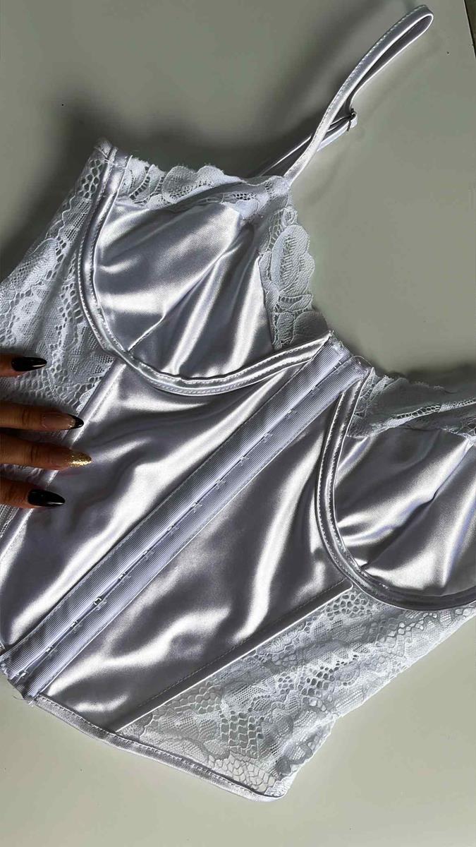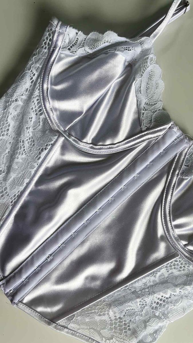 Sofisticação e poder em uma única peça. Este corset combina o brilho clássico do cetim com a delicadeza da renda floral, perfeito para compor looks de moda ou como uma lingerie especial. Modelagem estruturada com barbatanas que valorizam a silhueta, alças reguláveis e fechamento frontal por colchetes.Laterais e costas em renda com transparência elegante.