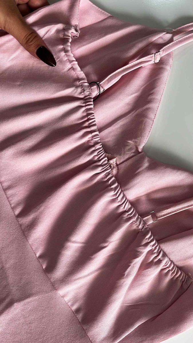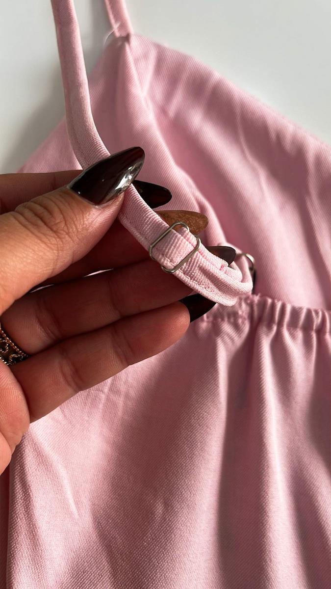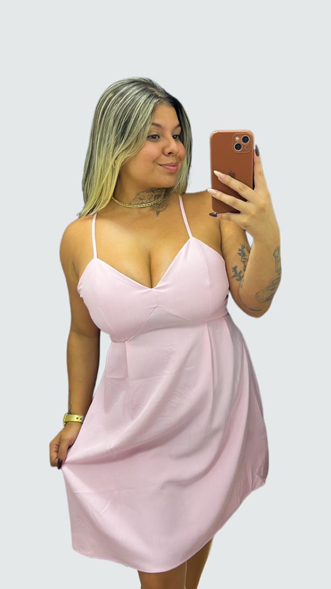 O vestido perfeito para quem busca um visual romântico e fresh. Esta peça possui decote em V estruturado que valoriza o busto e uma saia com caimento levemente evasê. O detalhe elástico nas costas garante que o vestido se molde perfeitamente ao seu corpo, oferecendo conforto total para o dia a dia ou eventos especiais.