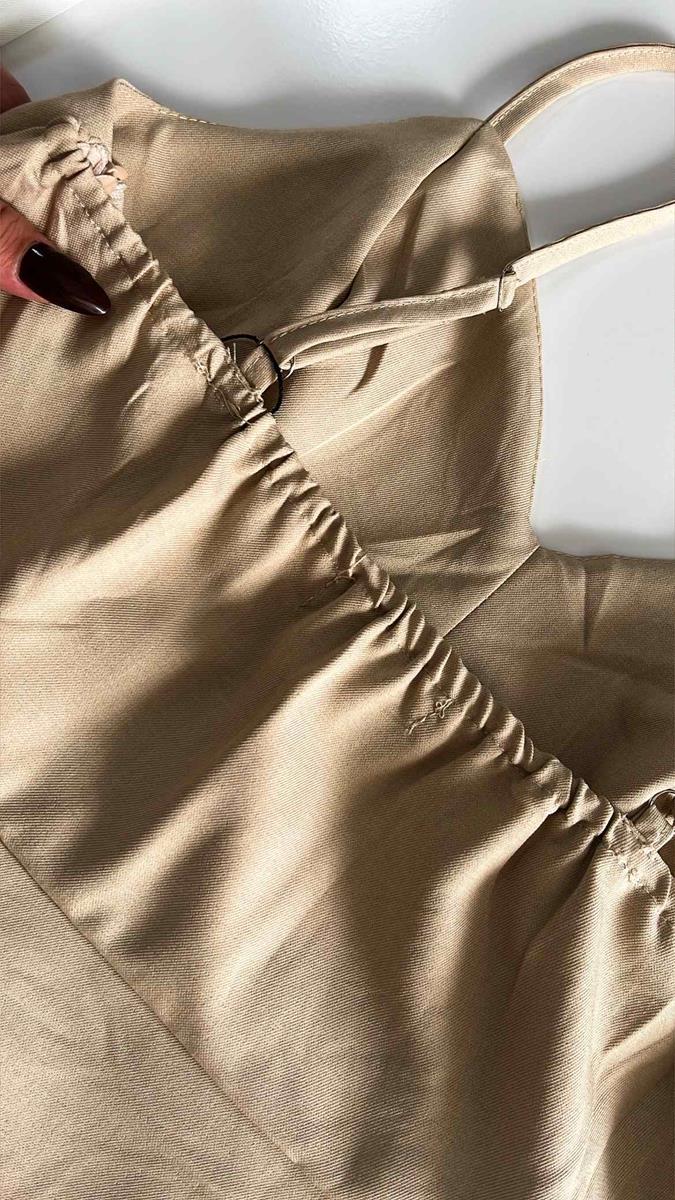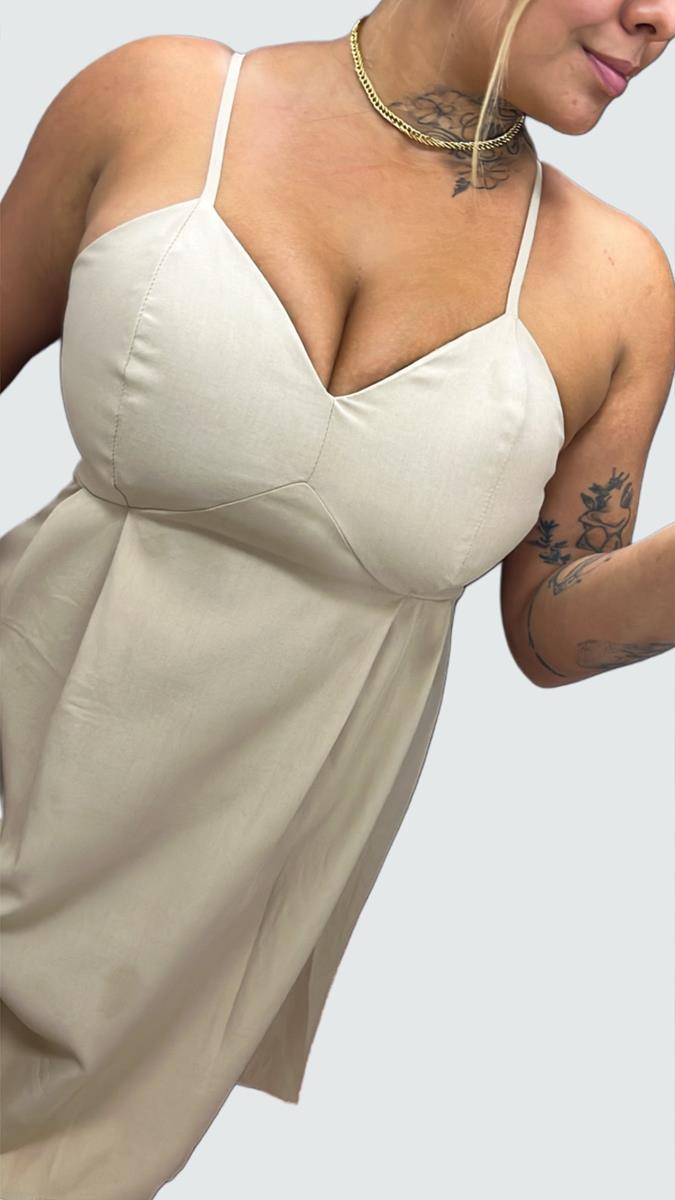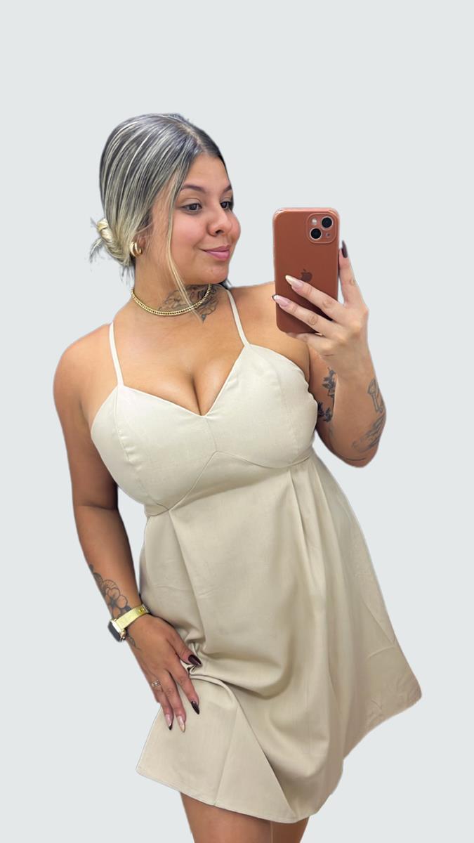 O vestido perfeito para quem busca um visual romântico e fresh. Esta peça possui decote em V estruturado que valoriza o busto e uma saia com caimento levemente evasê. O detalhe elástico nas costas garante que o vestido se molde perfeitamente ao seu corpo, oferecendo conforto total para o dia a dia ou eventos especiais.